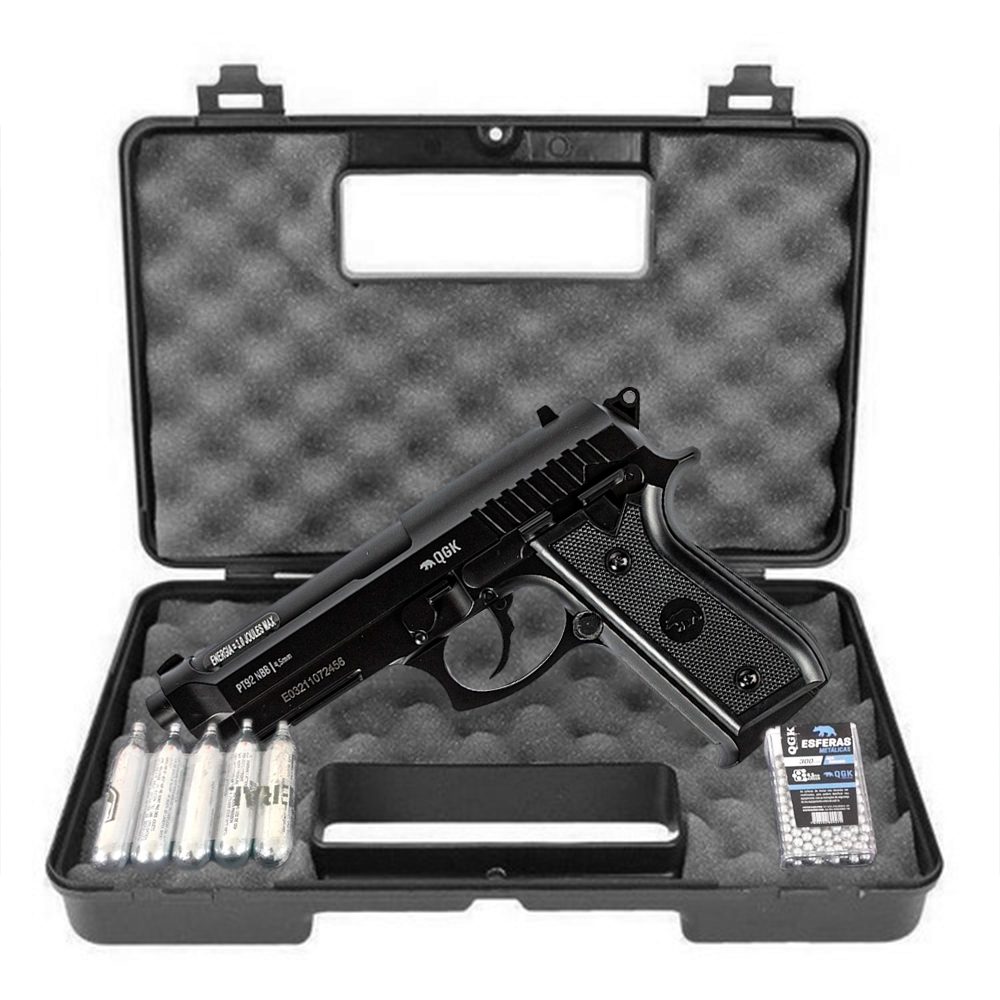 Kit Pistola de pressão QGK PT92 NBB 4,5mm. + maleta + 5x CO2 + 300 esferas