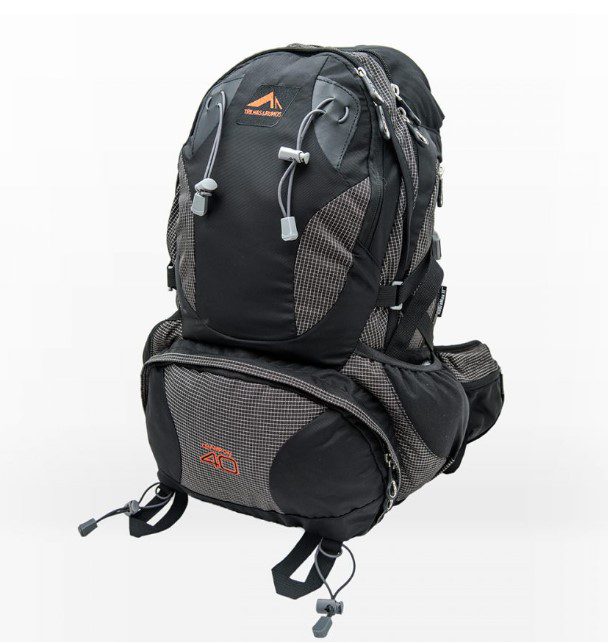 Mochila uso misto Crampon 40 Ref. 1440 Características: Mochila uso misto Crampon 40, com muitas divisões e bolsos, podendo ser usada em viagens, na faculdade ou atividades ao ar livre. Dois bolsos laterais com elástico permitem levar garrafas de água ou guardar itens de acesso rápido. Dois bolsos laterais, na parte de cima, comportam itens pequenos como carteiras, celular, canivete, etc. O bolso frontal vem com divisórias para canetas, chaves, etc. Seu sistema de alças mais rígidas proporciona um conforto adicional, principalmente quando mais cheia. O cinturão abdominal tem bolsos nos dois lados, vem com fita peitoral e as costas acolchoadas com abertura permitem uma melhor ventilação e evaporação do suor. Tem divisória interna no compartimento principal, que pode ser acessado por baixo, em zíper frontal. Fitas de compressão laterais ajudam a compactar a carga, quando não totalmente cheia. Costas com acolchoamento ventilado e semi-rigido, dando estrutura à mochila. Vem com capa de chuva embutida e suporte a sistema de hidratação (não incluso). Características da Mochila uso misto Crampon 40. Capacidade: 8 Kg / 40 litros Comprimento: Aproximadamente 51 cm de altura Largura: Aproximadamente 30 cm (de uma lateral a outra) Altura: Aproximadamente 18 cm (profundidade)